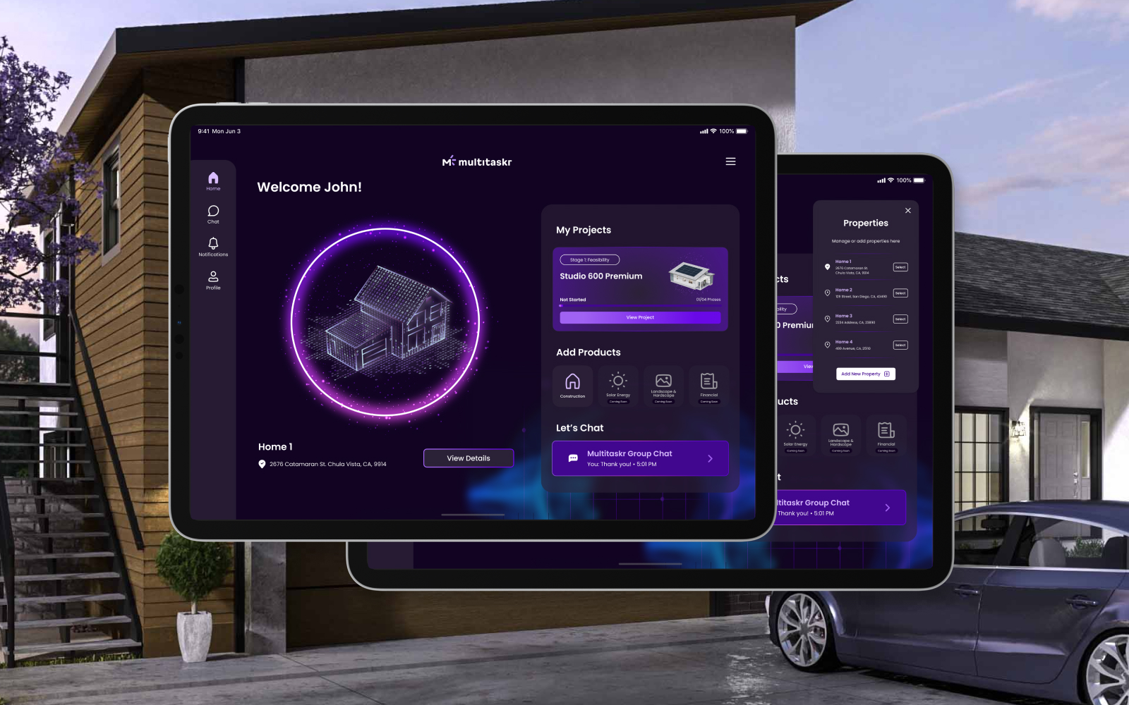 Multitaskr es una compañía tecnológica estadounidense que conecta a propietarios de viviendas con servicios integrales de mejora y financiamiento. Lunder colaboró con la marca para diseñar una aplicación que permite a los usuarios gestionar el "gemelo digital" de sus propiedades de manera intuitiva.